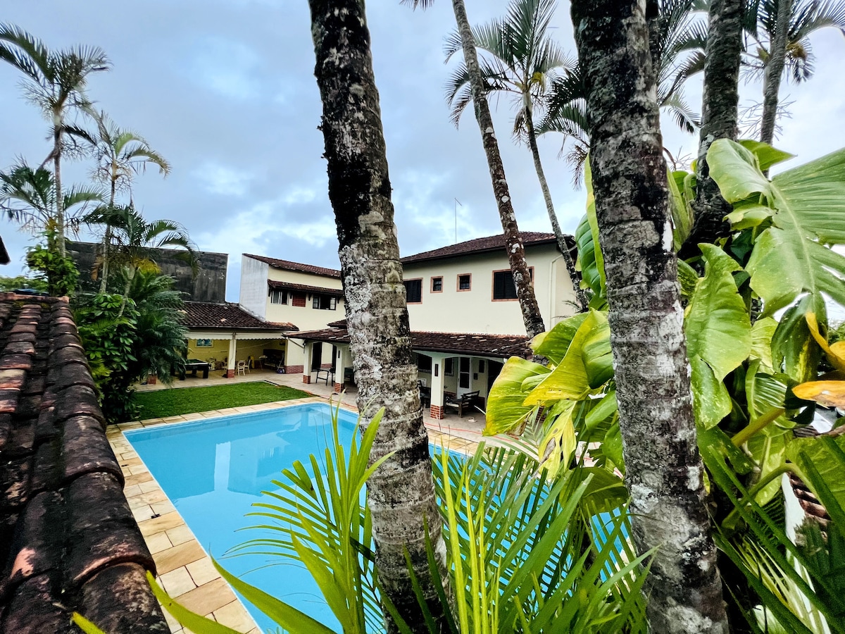 Dođite i uživajte u odličnom boravku u našoj kući na plaži 3 min. od najbolje plaže Praia do Litoral da Baixada Santista. Kuća sa španskim stilom. Sadrži garažu sa prostorom do 4 automobila, unutra imamo prostranu sobu sa pogledom na bazen, 5 spavaćih soba su 3 apartmana. Casa Comporta do 20 ljudi za spavanje. Imamo prostor za rekreaciju sa velikim roštiljem sa stolom za bilijar i stolnim tenisom. A Casa e Located Near to Restaurants, Markets, Pharmacies, Açuge, etc.