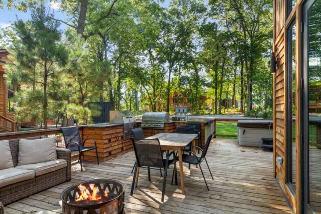 Pobjegnite u kolibu Bear na ostrvu Monkey – savršeno za golf putovanja, vikende za djevojke/momke ili grupne izlete. Opustite se u privatnoj hidromasažnoj kadi, okupite se oko unutrašnjih/spoljašnjih kamina ili kuvajte u kompletnoj spoljnoj kuhinji sa roštiljem i pušnicom. Uživajte u večerima oko ognjišta pod zvijezdama ili se opustite na prostranoj terasi pogodnoj za grupe. Moderna rustikalna brvnara udaljena samo nekoliko minuta od golf terena Monkey Island, jezera Grand Lake i plaže The Anchor. Podstičemo nedeljne letnje boravke – planirajte ranije za praznike i najbolje letnje nedelje!