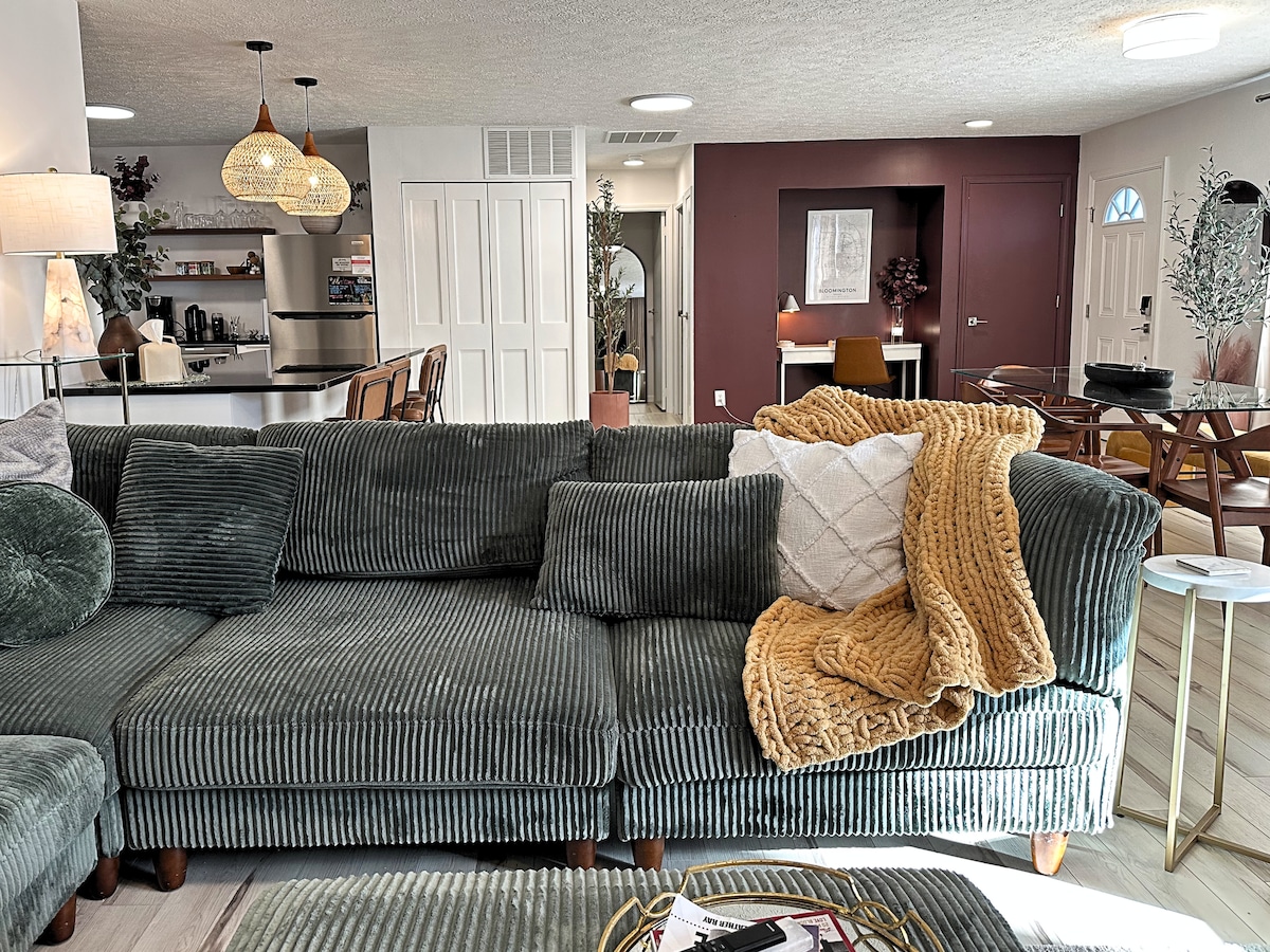 Moderan priobalni stil i sveže renoviran stan koji se nalazi u prelepom Blumingtonu u Indijani, manje od jedne milje od jezera Monro. Udoban stan na drugom spratu gleda na 18. rupu naše ograđene zajednice. Sadržaji uključuju king size krevet, queen size krevet i Ashlei kraljica spavaća sofa, brzo neograničen ViFi internet i 50" 4K led TV sa Hulu Live. Savršeno za fudbalske i košarkaške utakmice, vikende roditelja i posete prelepom jezeru Monro.