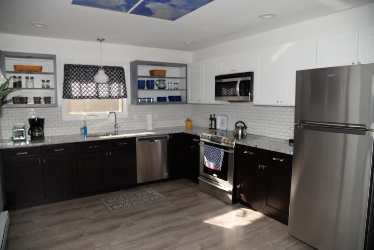 U blizini svega! 3 Skijališta, Kalahari, Hickory Run State Park, Lake Harmony, Jim Thorpe, Outlet Shopping & Casinos. Ovaj elegantni novouređeni dom ima 4 spavaće sobe i spavaću sobu, 1 bračni krevet (180x200), 1 bračni krevet (Queen in Den), 2 kraljice u prednjoj sobi, 2 blizanca u 3. sobi i poslednji set kreveta. TV i centralni vazduh u svim sobama. Open Concept, kuhinja, trpezarija, dnevna soba sa kaminom. Sunčana soba sa hidromasažnom kadom, nameštaj i TV, igraonica, terasa sa roštiljem i trpezarijom, ognjište, prednji trem i veliki parking.