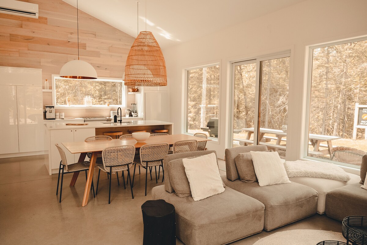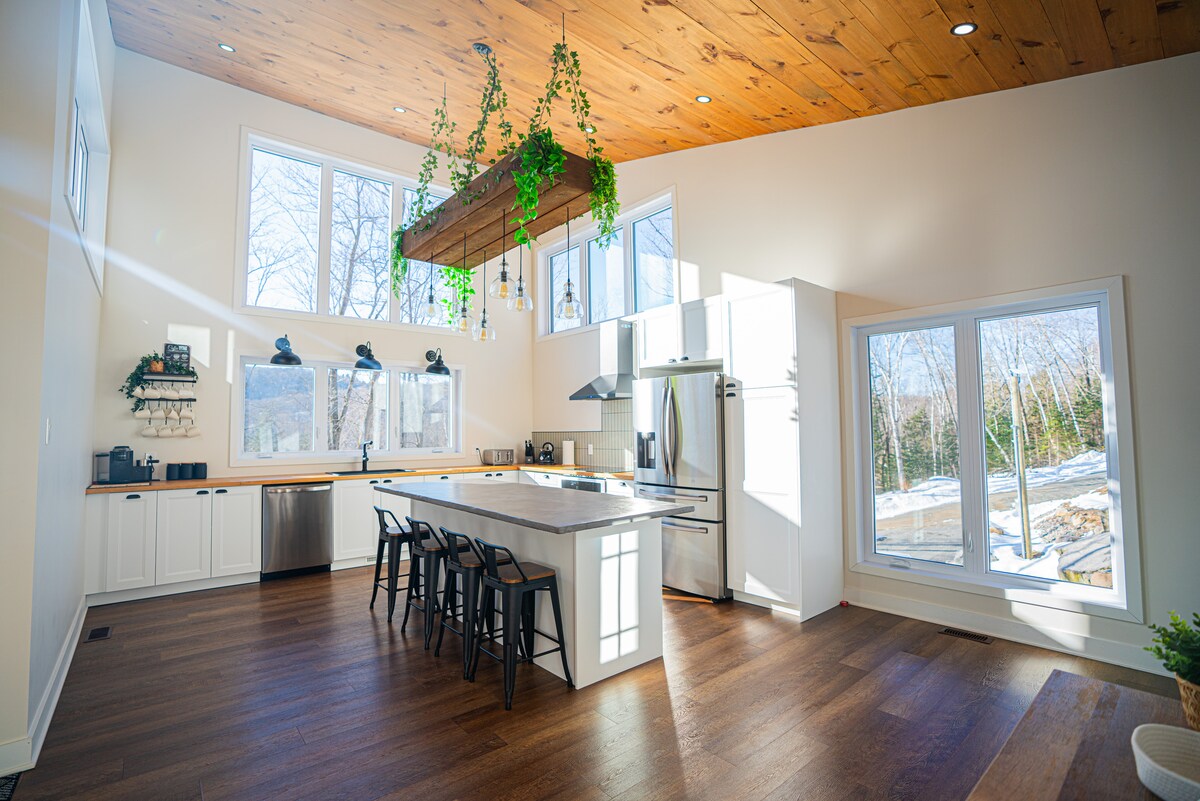 Ova šumska planinska kuća je energetski efikasna kuća na privatnoj padini od 10 hektara gdje su pogledi jednostavno zapanjujući. Arhitektura kuće je jedinstvena sa izloženom drvenom konstrukcijom od punog drveta. Okruženi veličanstvenom ljepotom šume koja vam pruža pristup zadivljujućim skijaškim stazama i veličanstvenim planinarskim stazama udaljenim samo nekoliko koraka. Uživajte u skijanju u St. Sauveur i Mont-Tremblant i planinskoj kući! ****Svaki gost mora da pročita dodatna pravila prije rezervisanja. ***