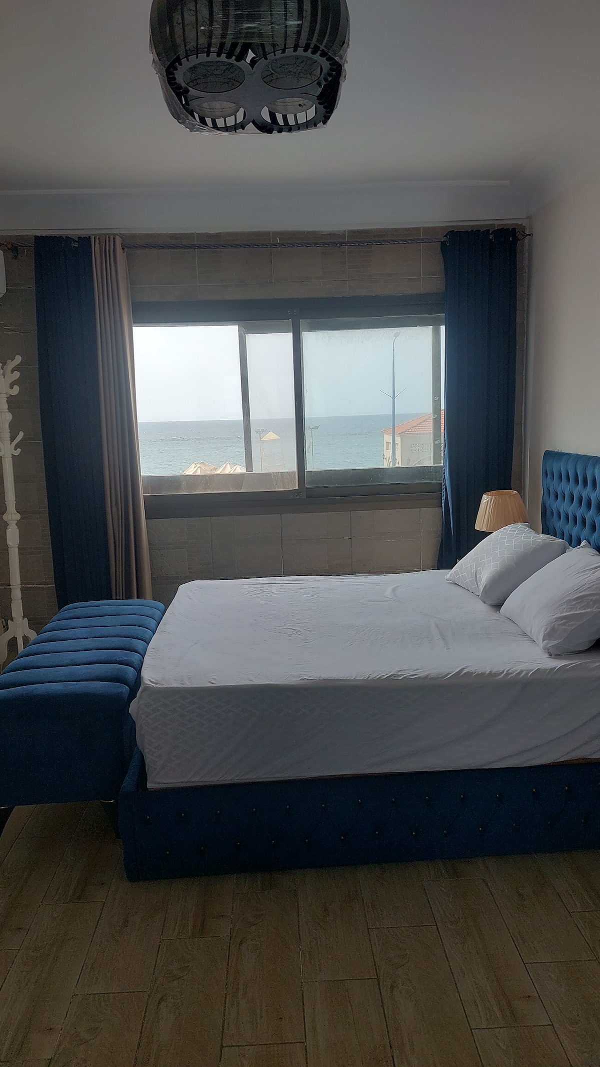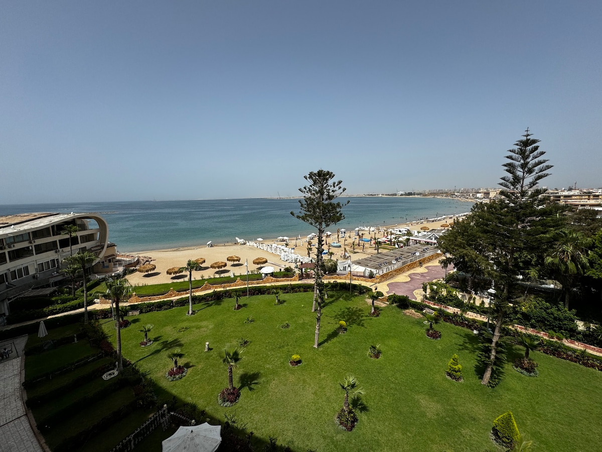Ugledan stan na plaži Aleksandrije u oblasti Montazah. Sastoji se od tri spavaće sobe sa 6 kreveta, dva kupatila, velikog hodnika sa trpezarijom, salona i dnevne sobe. Pored pogleda na more po širini hodnika. I veliki balkon sa sofom i stolicama od pletenog pruća i klasičnih perli. Stan se nalazi na devetom spratu, što mu pruža jedinstven pogled na plažu koju nikada prije nećete vidjeti.