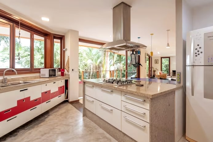 Kuća se nalazi u Praia do Sorocotuba, malom skrivenom raju u Guarujá sa samo 100 m prostora. Napuštena plaža tokom nedelje, nekoliko posetilaca vikendom. Udoban i rustičan, Ranč ima trpezariju i dnevne sobe, kuhinju, kupatilo, spavaću sobu sa bračnim krevetom, kao i balkon sa nezaboravnim pogledom na okean. Spavajte uz zvuk talasa, probudite se uz nevjerovatan izlazak sunca na moru. Stanite na pijesak, Rancho ima plažu i suncobrane, posteljinu i kompletno opremljena kupatila.