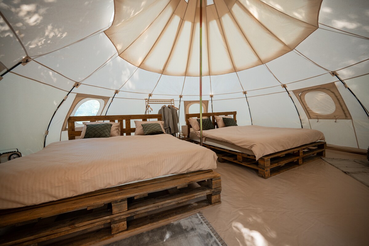 Dobro došli u Tranquil Tent Retreat, gdje se bezvremenska privlačnost prirode susreće s luksuzom moderne udobnosti. Porodično vlasništvo i briga. Smješteno u zabačenom kutku u centru prirode, naše mjesto za glampovanje nudi nezaboravan odmor onima koji traže skladnu mješavinu avanture i opuštanja. Uživajte u predivnom ambijentu ovog romantičnog mjesta u čistoj prirodi. Bezbjedno parking mjesto Veoma tiho okruženje