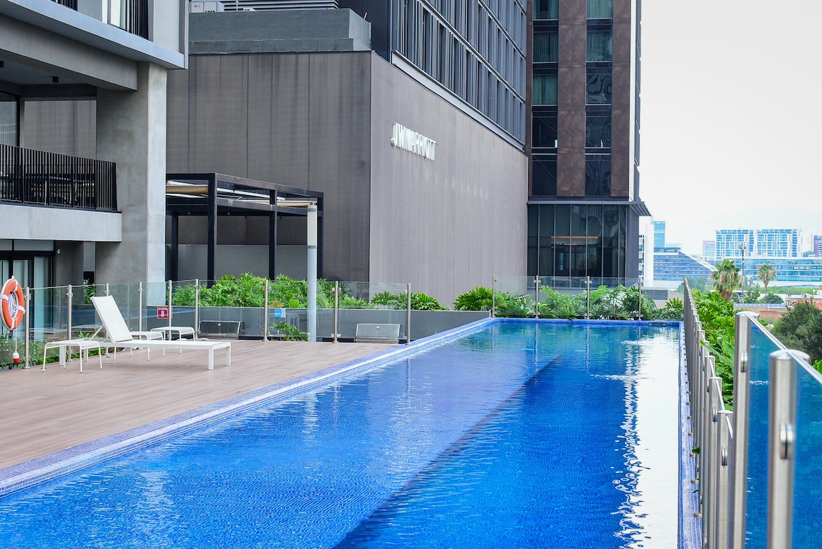 Dobro došli u savršeno mjesto za odmor! Ovaj šarmantni dvosobni stan sa 1 kupatilom, za 6 osoba, idealan je za porodice, parove ili grupe. Dizajniran sa modernim, udobnim detaljima, nudi sve sadržaje koji su vam potrebni za zabavu ili opuštanje. Opustite se u ekskluzivnom bazenu, ostanite aktivni u teretani ili se fokusirajte u coworking prostoru. Praktično smješten u blizini lokalnih atrakcija, restorana i zabave, savršen je za udobnost, praktičnost i stil za slobodno vrijeme ili poslovna putovanja.