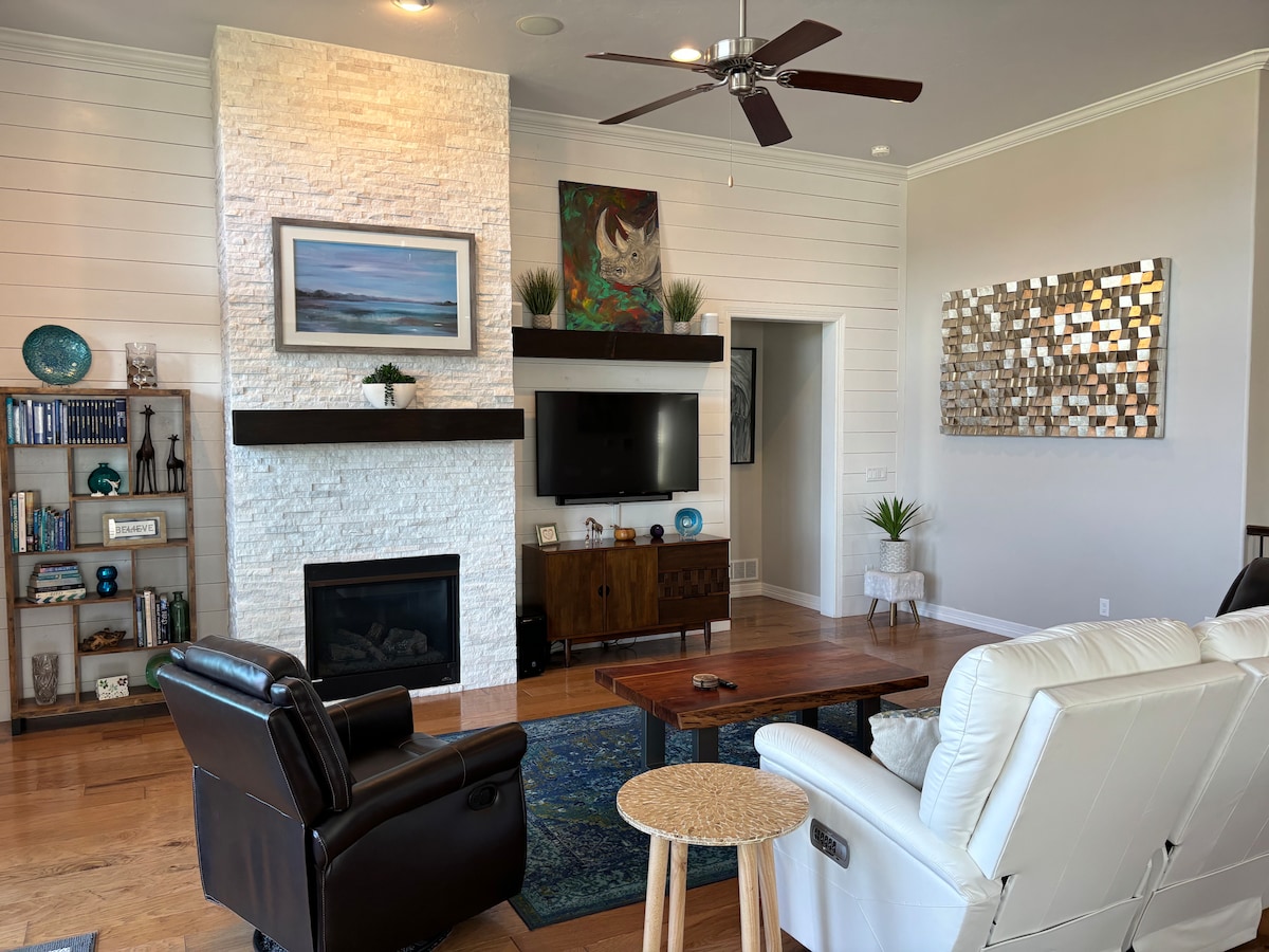 Ovaj prelijepi dom ima preko 3000 kvadratnih metara i nudi sav prostor, udobnost i osnovnu opremu koja vam je potrebna za savršen porodični odmor ili odmor: 5 spavaćih soba, 3 kupatila, otvorenu kuhinju s velikom trpezarijom, klima-uređaj, brzi Wi-Fi, Netflix, Smart ROKU televizore u svakoj sobi, porodičnu sobu sa stonim fudbalom, kućnu teretanu, vešeraj, pogled na planine koji oduzima dah sa novoizgrađene vidikovce, travnato ograđeno dvorište, nevjerovatno zadnje dvorište sa dva stola, opuštajuću hidromasažnu kadu, ognjište na gas i roštilj!