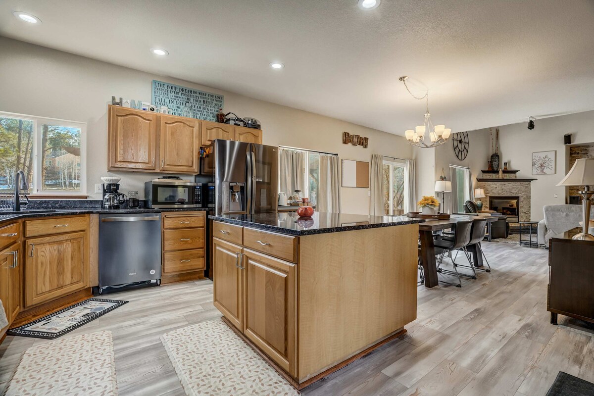 Specijalna ponuda za zimski odmor u januaru. Udobno se smestite pored kamina sa pogledom na planine, savršeno za porodična okupljanja, radne odmore ili miran odmor. Savremeni dom sa 5 spavaćih soba na prelepom jezeru Palmer sa prelepim pogledom na planine i jezero! Može udobno da spava do 10 osoba uz potpuno novi namještaj, garažu za 2 automobila, brz Wi-Fi. Uživajte u velikoj terasi sa ognjištem i roštiljem, jednostavnom pristupu stazama i jezeru i brzoj vožnji do Kolorado Springsa i Vazduhoplovne akademije.