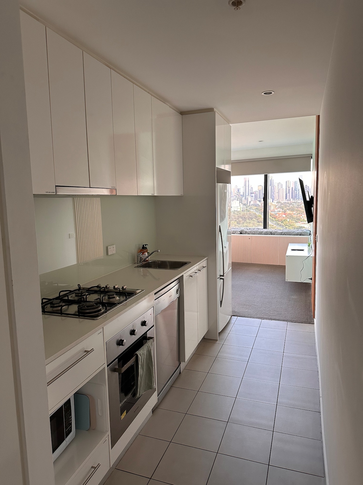 Ovaj prelepi stan ima neverovatan pogled na grad, izuzetno je udoban, moderan, prostran i izuzetno čist sa svim udobnostima doma. Bilo da se radi o korporativnim putovanjima ili romantičnom odmoru, ovaj stan je jedinstvena. Do tržnog centra Highpoint ima peške do tržnog centra, a samo 3 km od trkališta Flemington. Wi-Fi, Foxtel, parking za bezbjednost u sklopu objekta i udaljenost od 2 minuta hoda do javnog prevoza. Svakodnevno čišćenje sobe je dostupno za dodatnih 40 USD dnevno.