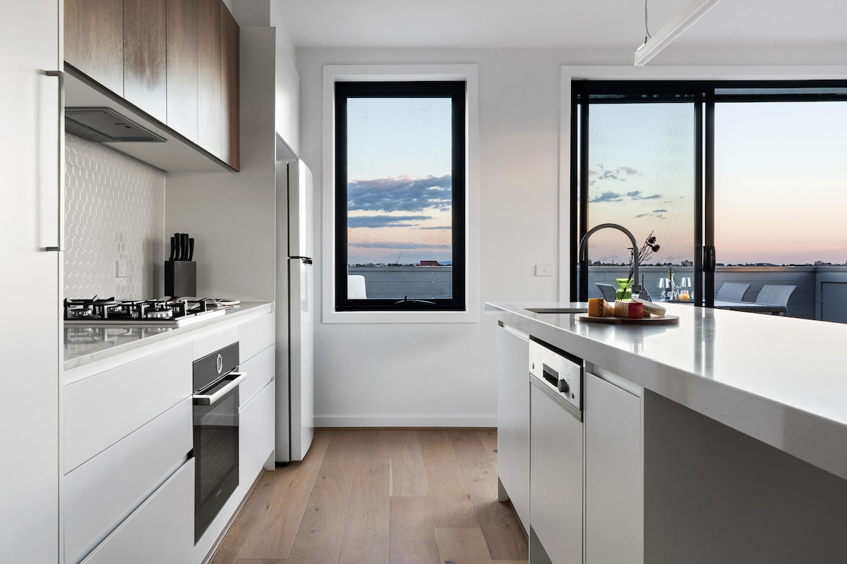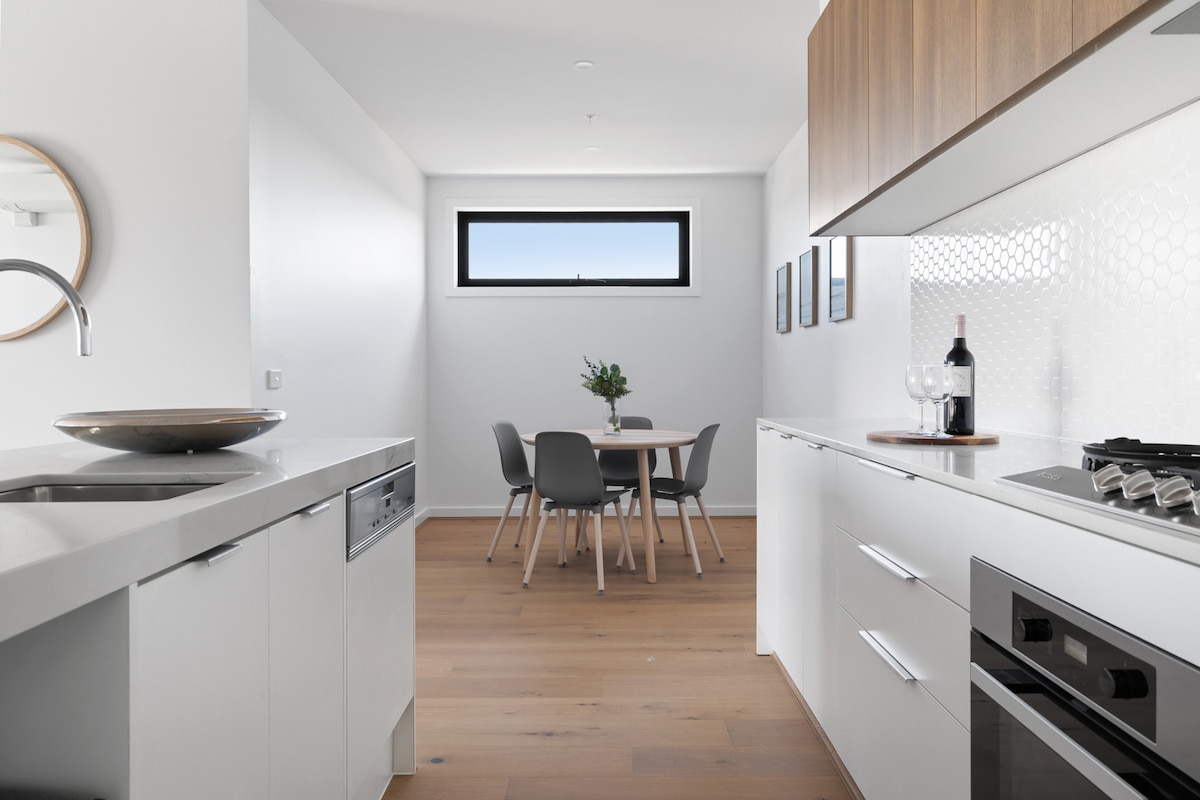 Jednostavan, čist i elegantan dnevni prostor sa 2 spavaće sobe i 2 kupatila u kojem možete da boravite, osvježite se i opustite. Ovaj prostor vas poziva da se odmorite ili kao baza za istraživanje kako želite. Poseban radni sto vam omogućava da nastavite sa poslom ili da budete u kontaktu sa prijateljima i porodicom, dok vam potpuno opremljena kuhinja omogućava da pripremite gozbu. Takođe imate i opciju da izaberete jedan od restorana u susjedstvu ili da odete u grad koji je udaljen samo 5 km i istražite znamenitosti, zvukove i ukuse Melburna
