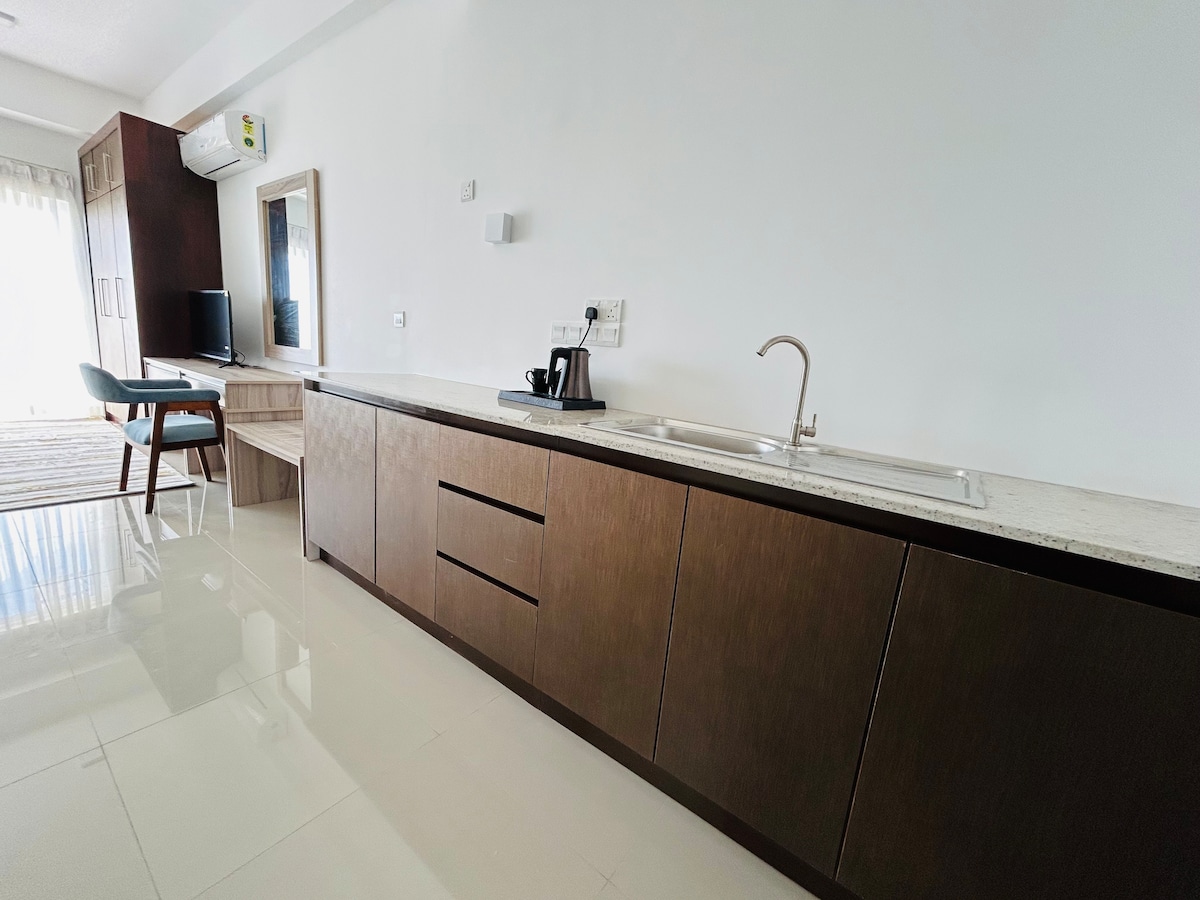 Prostor Privatni pogled na plažu iz cijelog stana sa elegantnim enterijerom za opuštanje i opuštanje. Uključuje preljevni bazen na krovu, terasu za jogu i teretanu. Savršeno mjesto za odmor od gužve i vreve ili rad na daljinu uz brzi internet, potpuno opremljenu kuhinju i luksuznu posteljinu Lokacija Međunarodni aerodrom Bandaranaike (Kolombo) – 19 km | 20 min. Kolombo – 14 km | 30 min Plaža Usvetakeijava – 950 m | 2 min Negombo Hotel Road – 10 min vožnje Plaža Negombo – 25 km | 44 min