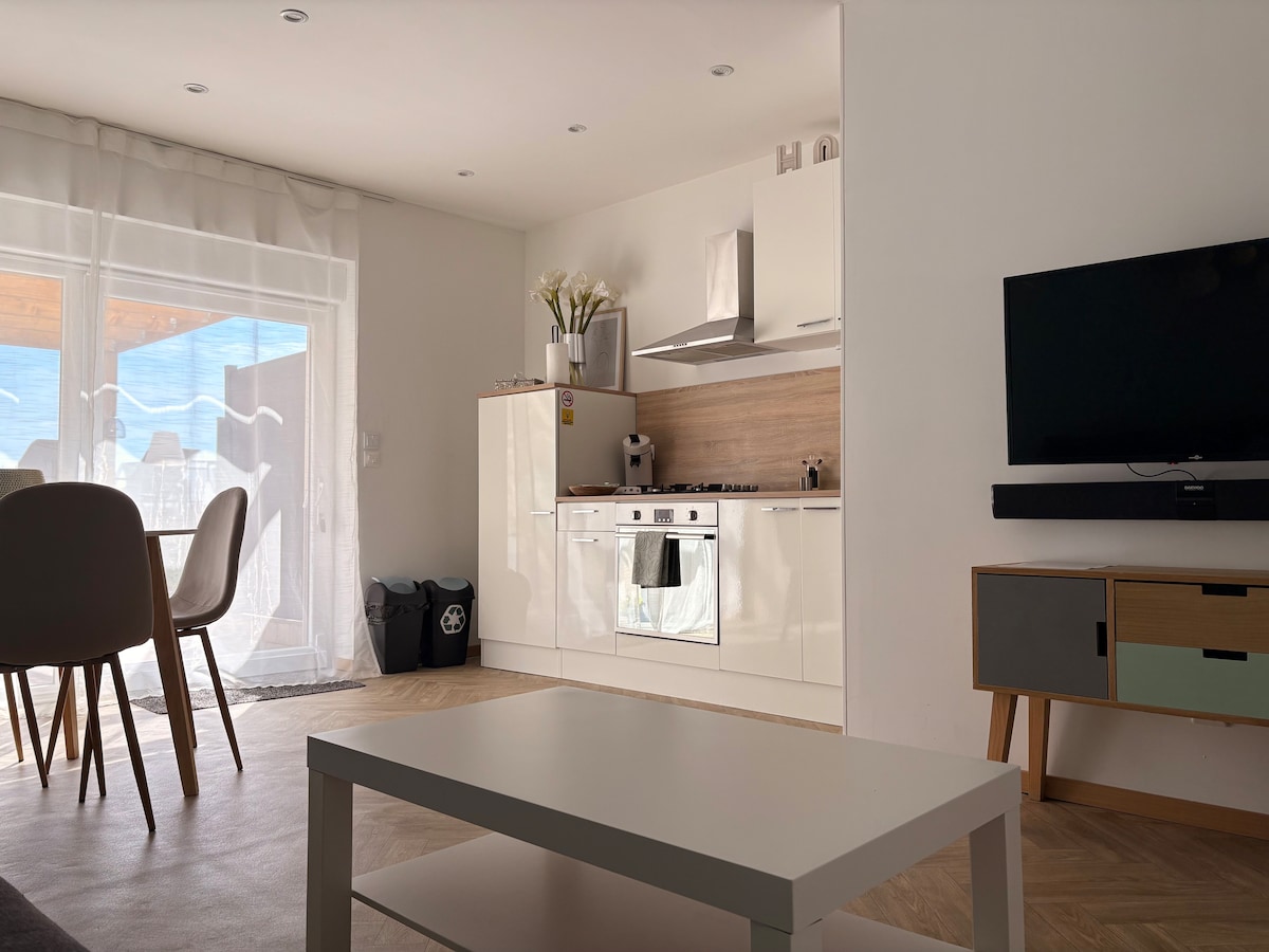 Nadamo se da ćemo vas uskoro ugostiti u našem novom stanu u „La Maison Rougeu“ koji se nalazi na autoputu i SNCF Lille/Dunkirk, železničkoj stanici i izlazu sa autoputa u blizini sela). - Nezavisni stan - Velika terasa sa panoramskim pogledom na prirodu - Šporet na drva - Potpuno opremljena kuhinja + mašina za pranje veša - Posteljina 180/200 veoma pažljivo izabrana kako bi se obezbedila maksimalna udobnost - Izuzetno brz Wi-Fi, Apple i Orange TV - Mnogo prodavnica peške