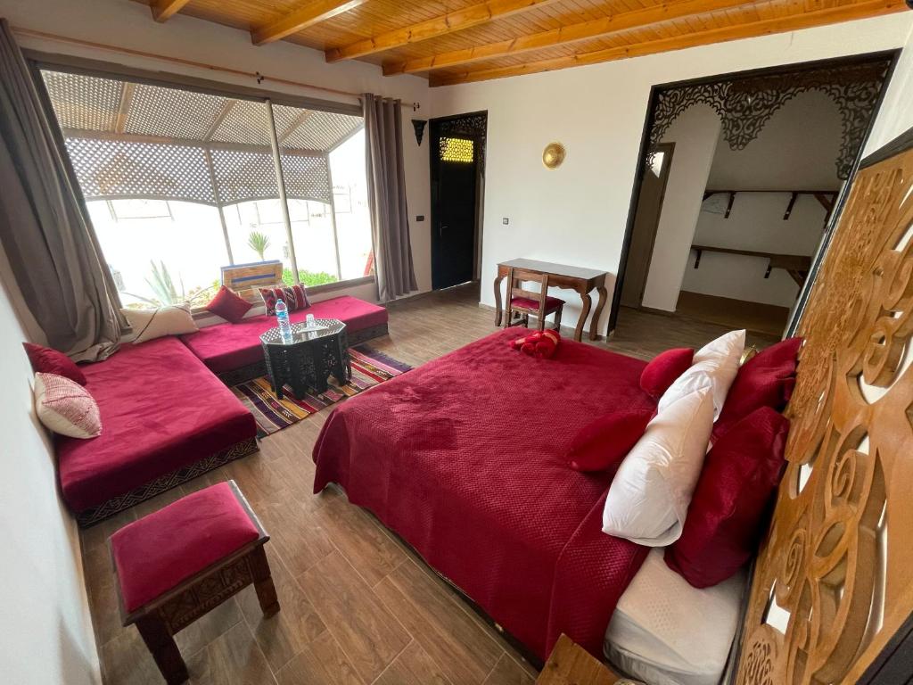 Priuštite sebi predah u miru u našoj udobnoj drvenoj brvnari, smještenoj usred prelijepe arganove šume. Ovdje vam je priroda jedini susjed: miris drveća, slatkoća vjetra i, u pozadini, umirujući šapat okeana. Brvnara kombinuje rustikalni šarm i savremene sadržaje: Svetao i topao životni prostor Udobna posteljina Kupatilo Privatna terasa idealna za divljenje izlasku sunca ili slušanje talasa.
