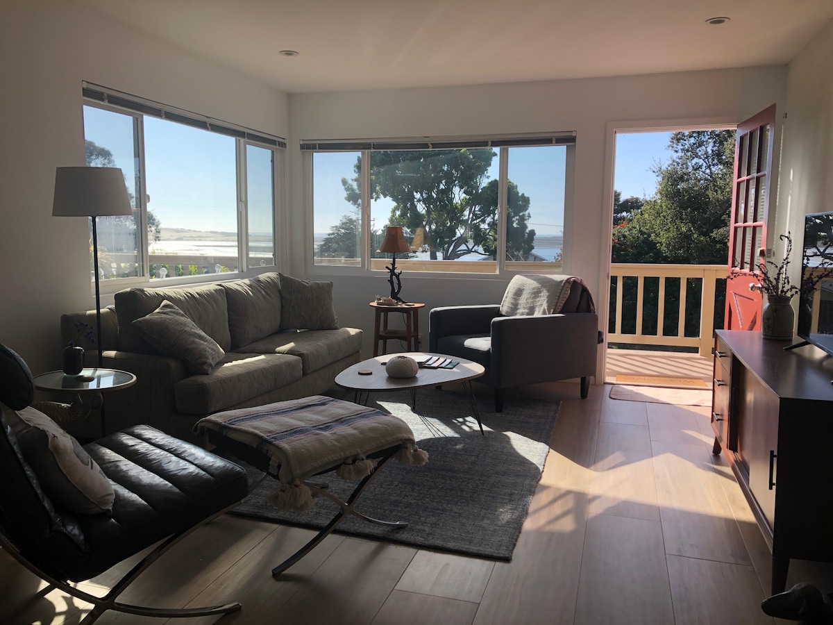 Opustite se u našem mirnom privatnom apartmanu na mirnom hektaru pored zaliva. Uživajte u zvucima okeana, drveću eukaliptusa, ptičjem svijetu i pogledu na zaliv iz vašeg apartmana, natkrivenoj terasi i ogromnom ograđenom dvorištu. Lagana šetnja do zaliva za pješačke staze/vožnju kajakom/veslanje na dasci. Samo 5 minuta od državnog parka Montana de Oro, epskih plaža i pješačkih/biciklističkih staza. U blizini odlične hrane, vina i kafe - kao i prijateljske posjete sa našim magarcem (Ozi), konjem (Nina) i pilićima!