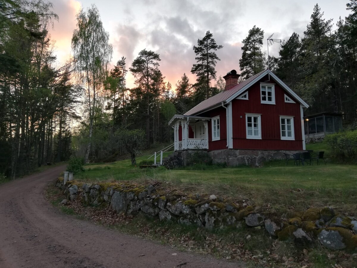 Materijali u našoj udobnoj seoskoj kućici, opremljenoj okom za tople boje i mekane materijale. Lilla Stugan se nalazi usred šume i livada i ima sopstveno kupalište, saunu i čamac. Dio je stare švedske seoske kuće na imanju od 10 hektara koje se nalazi između jezera Rummelsrum i Hyttegöl. Upoznajte bogatu faunu i floru direktno sa terase ili tokom dugih šetnji u okolini. Nakon kupanja u jezeru, uživajte u roštilju na atraktivno osvijetljenoj terasi.