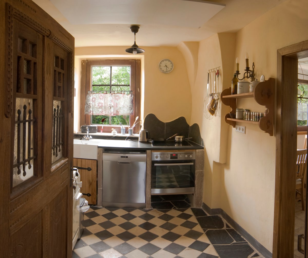 Moj muž i ja nudimo: prostran (90 m²) apartman sa svim pogodnostima u prizemlju sa pogledom na baštu. Nalazi se na periferiji malog sela u Ajfelu, s neometanim pogledom na ruralni, brdoviti pejzaž sa šumama. Smještaj nije prikladan za malu djecu. Mir i tišina! Privatni parking i ulaz. Terasa i bašta (2000 m2). Psi su dobrodošli. (javite nam prilikom rezervisanja) NE obezbjeđujemo doručak.