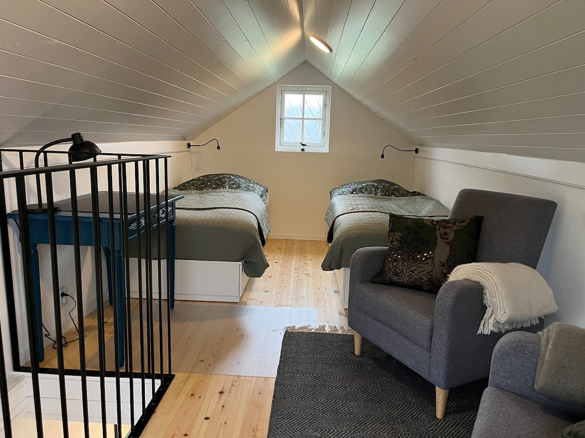Novozgrađena udobna kućica 42 m2 + potkrovlje za spavanje iz 2020. godine sa plažom odmah ispred prozora. Opuštajuća i mirna lokacija u Svarteu sa pogledom na more. Spavaća soba sa bračnim krevetom i potkrovlje za spavanje sa dva kreveta za jednu osobu. Dnevni boravak sa kaučem i TV-om Čajna kuhinja sa dve ringle, mikrotalasnom pećnicom, frižiderom i hladnim odeljkom Popločano kupatilo sa tušem i toaletom. Nameštena terasa sa pogledom na more. Kuhinja na otvorenom sa roštiljem na plin Tuš na otvorenom ispred vrata. Dostupni su TV, Wi-Fi i parking.