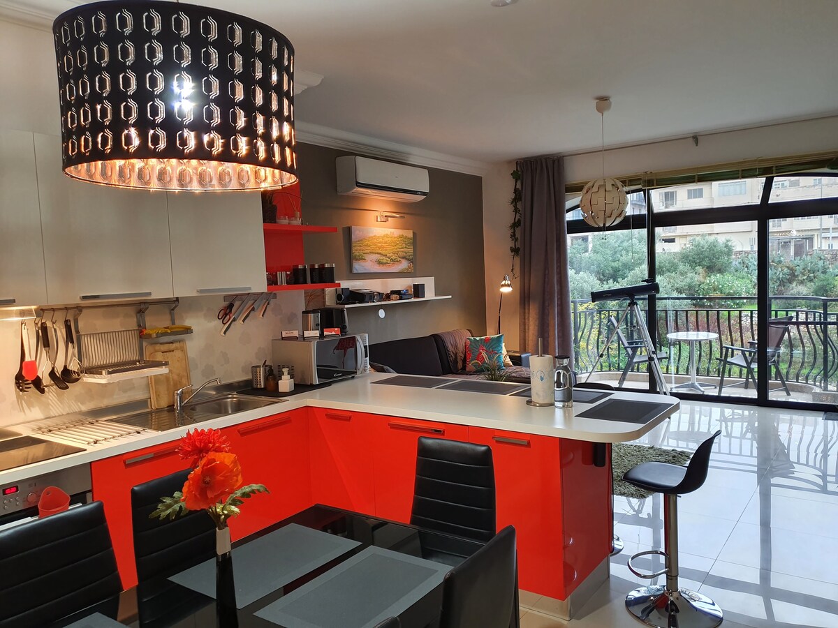 Odsjednite u našem predivnom stanu koji se nalazi nedaleko od šarmantnog seoskog centra Melliehe. Stan je opremljen svime što vam je potrebno da vam boravak bude što ugodniji. Živećete samo nekoliko minuta od javnog prevoza, plaža, restorana, pabova i prodavnica. Lokacija stana će vam takođe omogućiti da uživate u očaravajućem pogledu na unutrašnjost i more Malte. Na kraju dana, sjedite i uživajte u jedinstvenom pejzažu dok sunce zalazi iznad pejzaža.