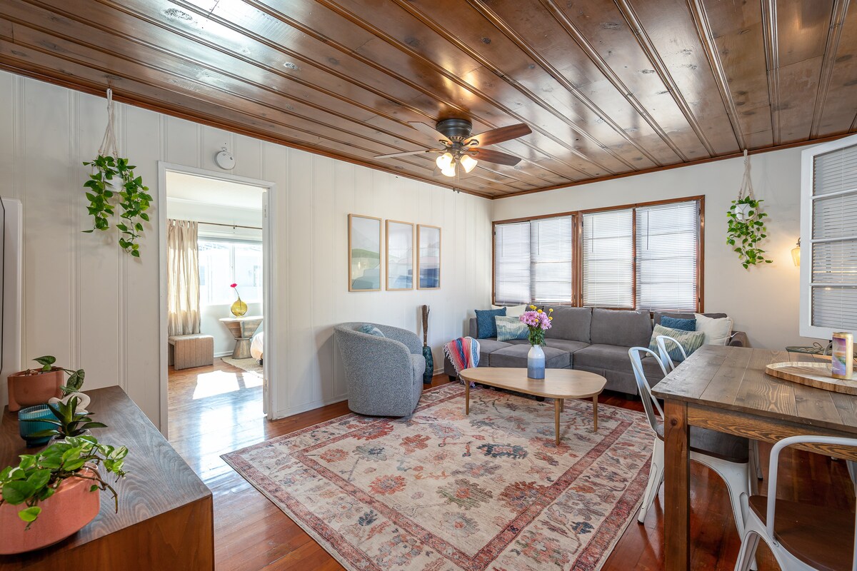 Soak up the Venice sunshine just two blocks from the sand! This charming two-story beach cottage offers a private backyard—a rare find near the ocean—perfect for BBQs and evenings by the fire pit. Beach-chic decor and local art create a relaxed, inspiring vibe. The downstairs suite has its own entrance, ideal for families, friends, or work trips. Fast Wi-Fi, quiet workspace, and free parking for two cars make this your perfect Venice getaway. Just 2 blocks to the beach & near lots of local food!