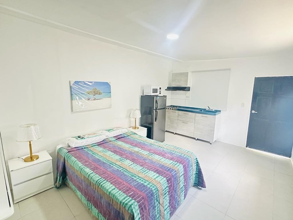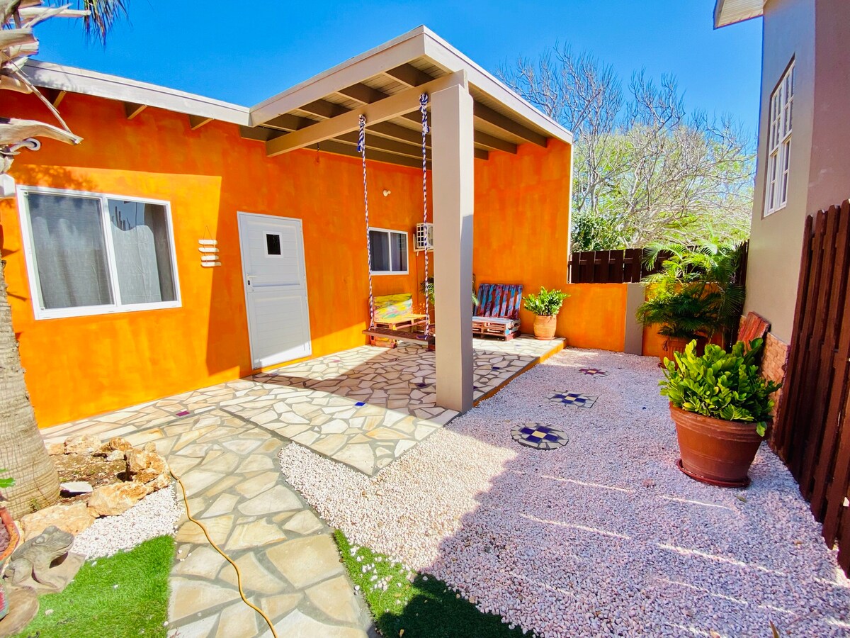 Nalazi se prekoputa španske lagune, gde okean ima 7 različitih plavih boja. Daleko od svih visokih hotela, gužve i vreve. Nudimo vam privatni jednosoban stan, našu plažu, hladovinu i jednostavan pristup plitkom delu okeana. Španska laguna je poznata kao jedno od najboljih mjesta za ronjenje i ronjenje na Arubi.