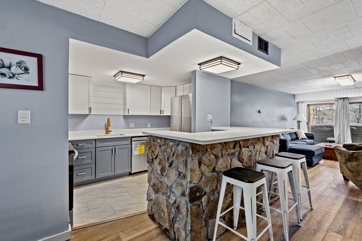 Stan je upravo renoviran novim ormarićima, aparatima, granitnim radnim površinama, rasvjetnim tijelima, bojom i nameštajem! To je dvosoban stan/dvosoban stan u kupatilu na planini Mt. Vile u četvrti 7 Springsa. Nalazi se direktno preko puta terena za golf i možete da prošetate do klupske kuće i da se prvo opustite! Ima privatnu hidromasažnu kadu na otvorenom i zajednički bazen i igralište. Nalazi se odmah pored stanice šatla koja će vas odvesti do padina, glavne kolibe, pucnjave gline i svih drugih destinacija odmarališta!