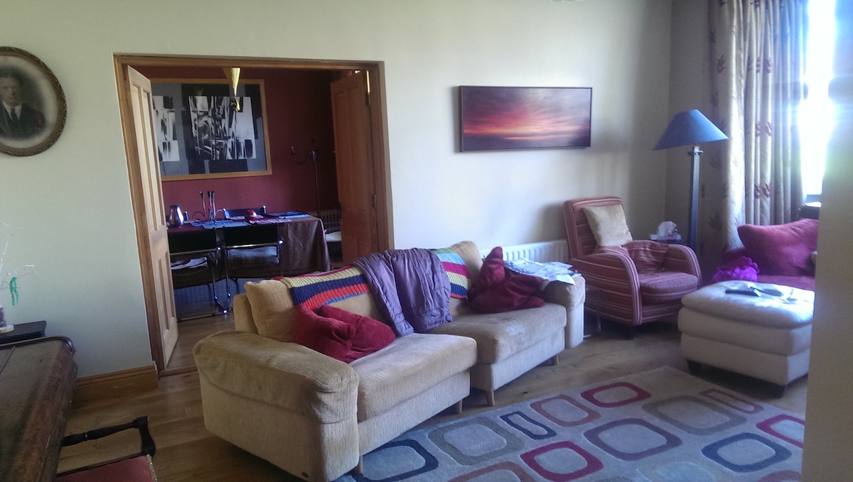 Opustite se sa porodicom u našem udobnom porodičnom apartmanu za odmor. Sa 2 spavaće sobe u prizemlju i porodičnim kupatilom sa podnim grejanjem imaćete dosta prostora i privatnosti. Sadržaji uključuju frižider, aparat za kafu, mikrotalasnu rernu sa kuvalom za vodu. Samo 5 minuta od Golvej Sitija, Sijetlai 2 kilometra od Glenlo opatije. Ukupno privatno sa zasebnim ulazom i parkingom Istražite Golvej Siti. Nalazimo se na divljem atlantskom putu,sa plažama Konemare i slikovitim liticama Mohera,koje su u neposrednoj blizini.