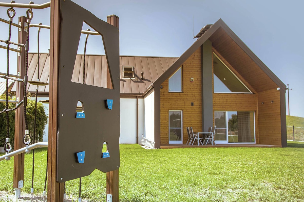 Nudimo vam jednospratnu drvenu kuću tokom cijele godine. Seoska kuća je klimatizovana, grijana. Ima dve spavaće sobe sa bračnim krevetima, dnevni boravak sa sofom i TV-om, potpuno opremljenu čajnu kuhinju, kupatilo sa tuš kabinom i privatnu saunu sa tušem. Napolju se nalazi terasa, dodatni prostor za sjedenje, baštenska lopta sa hidromasažnom kadom. Tu je prostor za roštilj, ognjište i malo igralište. U blizini jezera Kzos, gradske plaže, amfiteatra i prodavnica.
