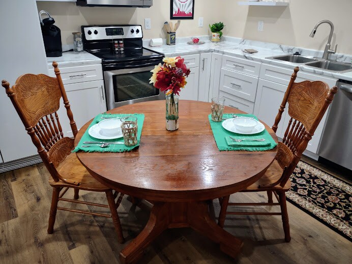 Dobro došli u ovaj udoban stan, samo nekoliko minuta do centra Nešvila i aerodroma bna. Stan se nalazi u donjem spratu naše porodične kuće koja ima privatnu ulaznu terasu i dovoljno parkinga. Prostorija za okupljanje sa kaminom je otvorena za potpuno opremljenu kuhinju i jedite na ostrvu. Brza Wi-Fi mreža, TV od 42inča u sobi za okupljanje. Kupatilo ima panoramsko ogledalo i prilagođenu keramičku tuš-kabinu. Stan ima sopstvenu praonicu veša . Šumovito utočište koje je u blizini Nešvila za odmor!