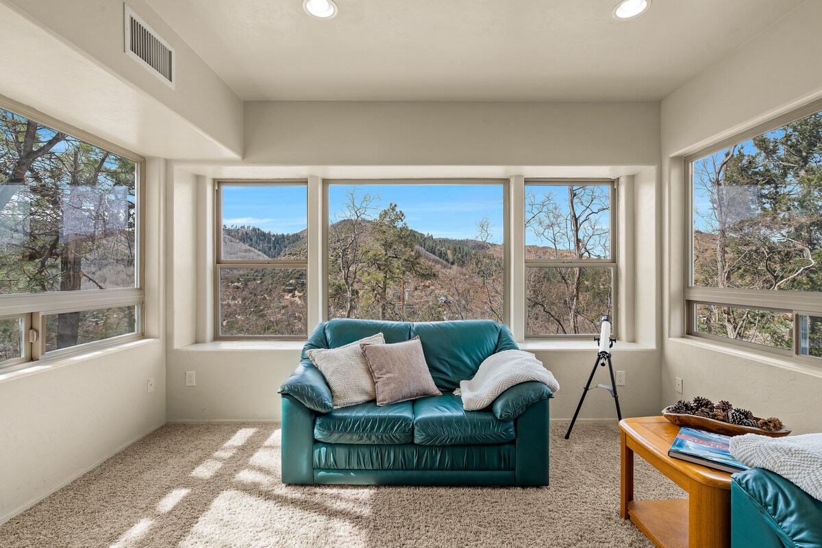 Na visini od oko 8000 metara, u gradu Summerhaven, Arizona (70 minuta od centra Tusona), „Kuća na terasi“ je savršeno mesto za kratak odmor od letnje vreline Tusona, kao i idealno odredište za zimski odmor. Ovaj dom u brvnari od 2.200 kvadratnih metara idealan je za porodična okupljanja (do 10) sa udobnim unutrašnjim prostorima i 3 terase na otvorenom. Brvnara je udaljena 2 minuta vožnje od glavnog autoputa Hičkok i udaljena je 15 minuta hoda od grada. 325 USD po noćenju. Dodatna naknada za više od 6 gostiju (uključujući djecu). Popust na „Sedmični boravak”.