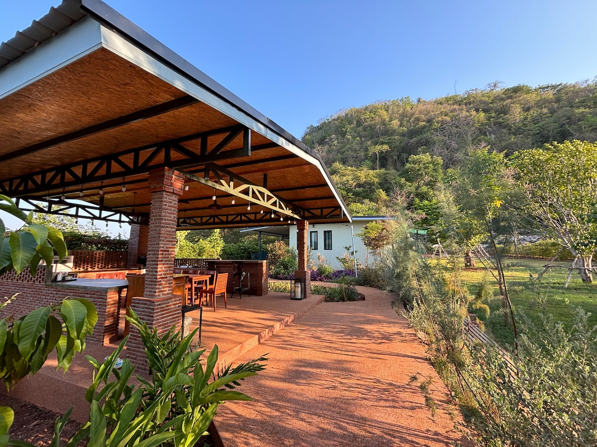 Dobro došli u kuću za dobar dan. Ova privatna kuća se nalazi pored reke Lum Tačong okružena prirodom u blizini kajakaja. Kuća, uključujući prednje dvorište i dvorište, omogućava vam da uživate u pejzažu na otvorenom. Nudimo vam sve neophodne sadržaje u kući kako bismo bili sigurni da ćete imati savršen odmor sa modernom seoskom vilom duž reke Lam Ta, koja ima kristalno čistu vodu i koja je pogodna za igru. Oko kuće je travnjak. Prostor kuće se sastoji od 3 glavne spavaće sobe sa kupatilima i drugim sadržajima, tako da možete potpuno da se opustite u prirodi.