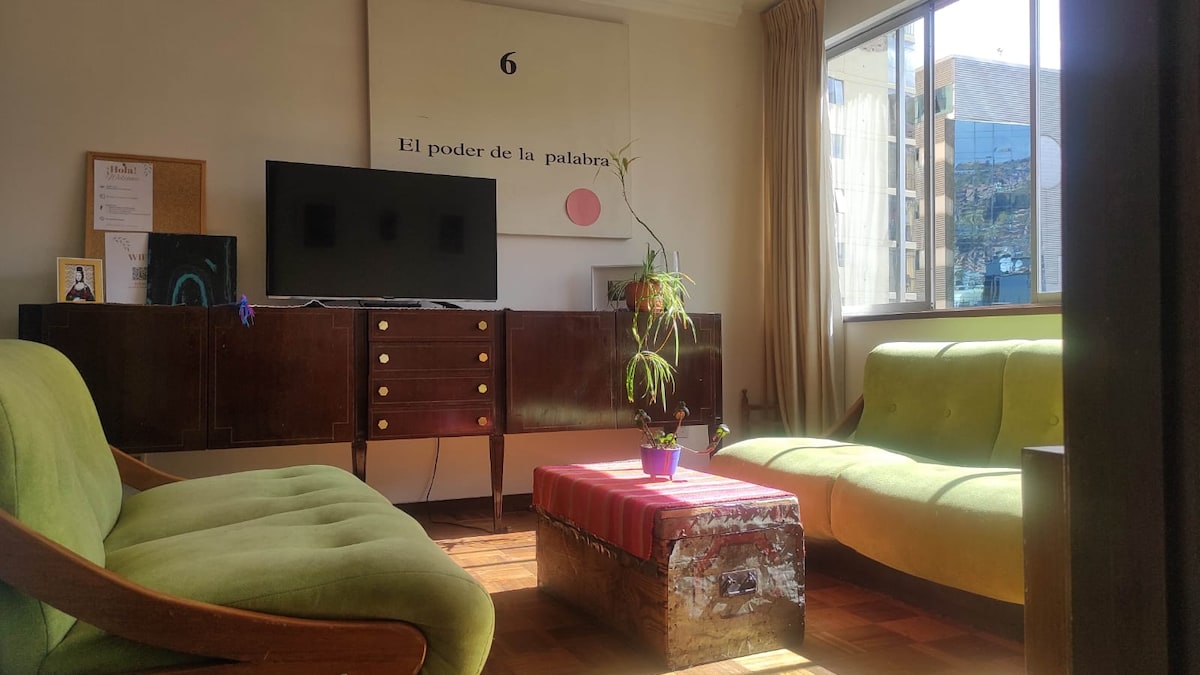 Nalazi se u najboljem dijelu grada La Paza🌆, Sopokahi, u neposrednoj blizini restorana, kafića, tržnih centara, parkova, pabova, banaka i još mnogo toga🛍️🍸. Unutar zgrade baštine, naš stan spaja luksuz i udobnost. Manje od dva bloka od vrata pronaći ćete javni prevoz do bilo kog dijela grada. Opremljen svime što vam je potrebno da biste se osjećali kao kod kuće🏠. Zgrada se nadzire 24 sata, tako da je 100% bezbjedna. Nema boljeg smještaja!