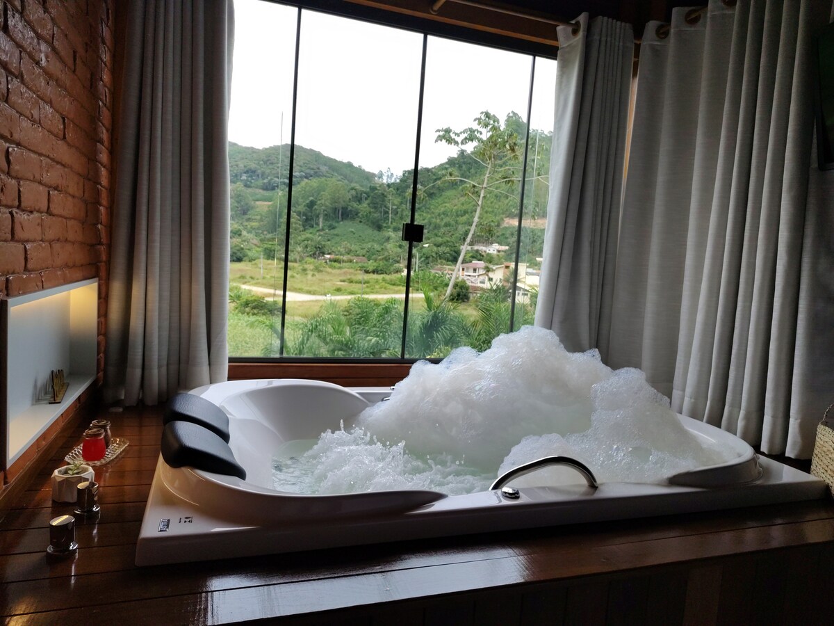 Nestled in the mountains of Caparaó, Chalé Nó de Bambu is a peaceful retreat for those seeking rest and connection with nature. Guests often highlight the silence, cleanliness and overall comfort of the space. The private hot tub on the veranda invites relaxation, while the outdoor fire pit sets the mood for calm nights under the stars. A place to slow down and enjoy the landscape with comfort and privacy. The access road is in good condition and the chalet is easy to reach.
