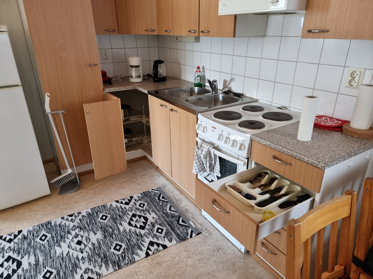 Dobro došli da ostanete u Muoniu! Mirno malo selo od oko 1100 stanovnika, smješteno na obali reke Muoniojoki. Samo nekoliko stotina metara od prednjeg kanala reke nalazi se naša mirna, udobna kuća. Moći ćete da koristite jednu polovinu kuće. Kuća ima dva stana koja nisu povezana. Privatnost i mir za naše goste! Do centra Muonija, gdje ćete pronaći vrlo dobru odabranu prodavnicu K-marketa, a takođe i S-market koji je udaljen samo oko 2,2 km.