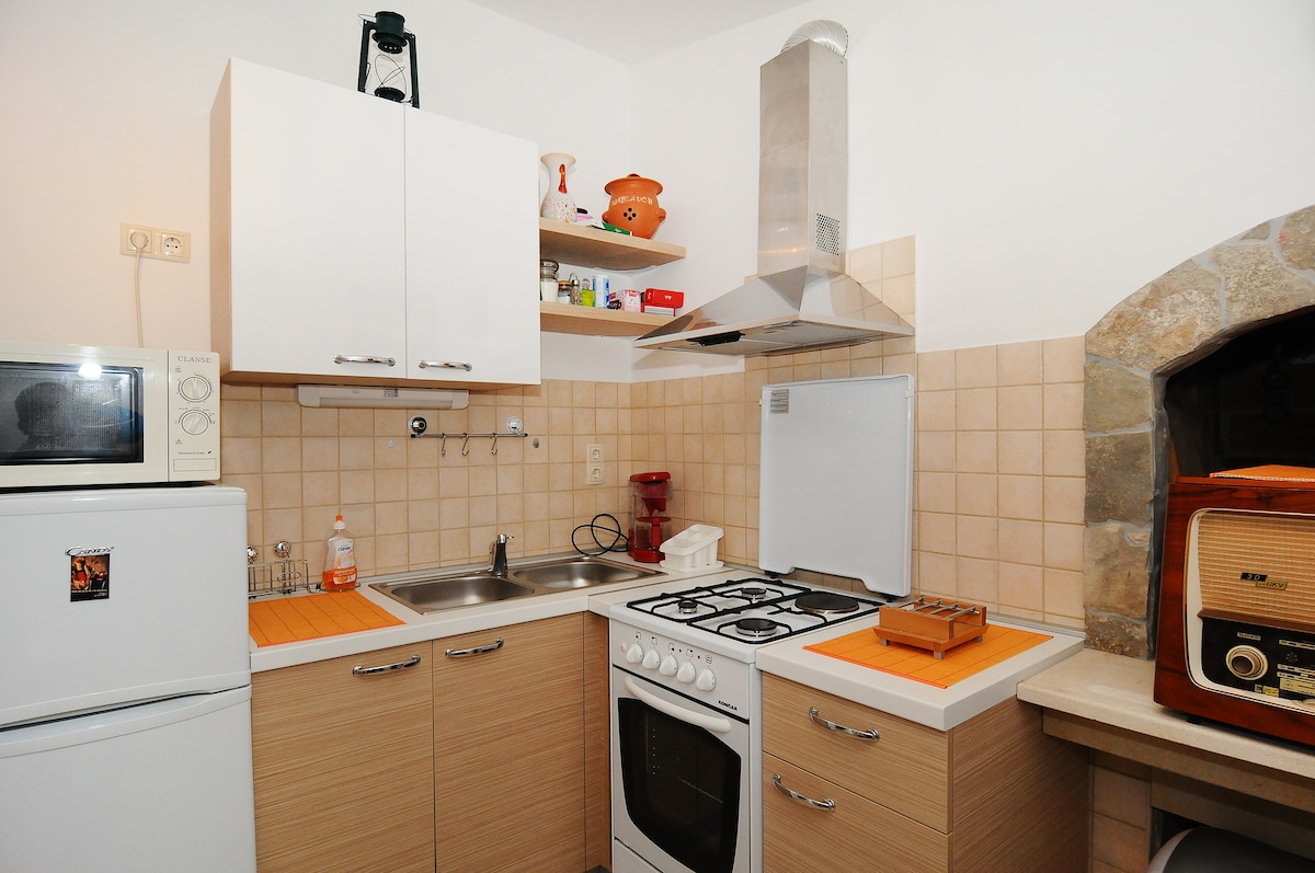 Apartman je deo agroturizma Mornarevi Mlini. Naš eko vrt je pored kuće gde možete da berete sveže voće i povrće. Naša otvorena terasa je takođe u blizini i možemo da pripremimo tradicionalna jela sa jedinstvenim doživljajem, ili gosti mogu da provedu slobodno vreme tamo. Tokom zimskog perioda imamo posebnu ponudu sa odličnom cenom koja se može dogovoriti i opcionim organizovanim aktivnostima (pecanje, maslina, izleti,...).