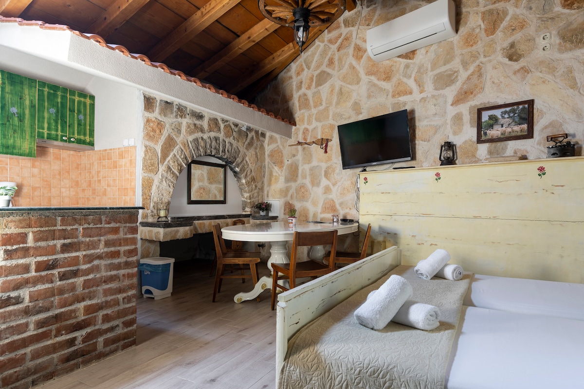 Prekrasna mala dalmatinska kamena kuća, smještena u oazi maslinika i plodnih polja. Kuća je spojena sa prirodom i korišćenjem resursa iz prirode potoka (solarnih panela) i vode (kišnice). Kuća je idealna za aktivne praznike, tišinu i bez buke, saobraćaja, komšija i interneta. Gosti mogu da koriste kamin gde mogu da uživaju u raznim specijalitetima sa roštilja.