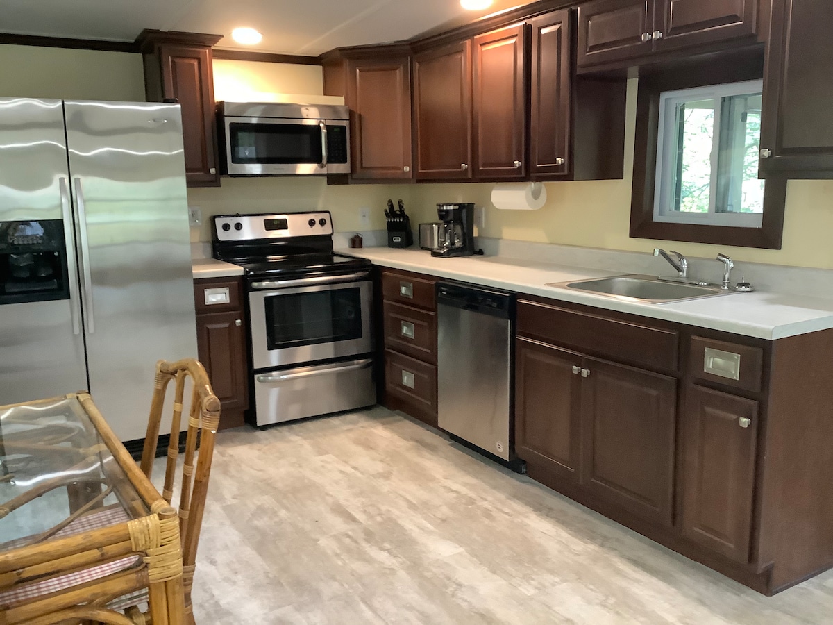 * KUĆNI LJUBIMCI NISU DOZVOLJENI, BEZ IZUZETAKA* *NE POMJERAJTE NAMJEŠTAJ, to uključuje krevete!* Prvi sprat je prostran sa televizorom u dnevnoj sobi i dovoljno mesta za sedenje za otvorenu dnevnu trpezariju. Kuhinja ima sve što vam je potrebno za spremanje i roštiljanje pozadi! Na spratu se nalazi i zabavno potkrovlje, 7 kreveta i kupatilo sa velikom tuš-kabinom. Kuća je u šumi sa ognjištem sa klupama, duž velikog prednjeg trijema za uživanje u vremenu!