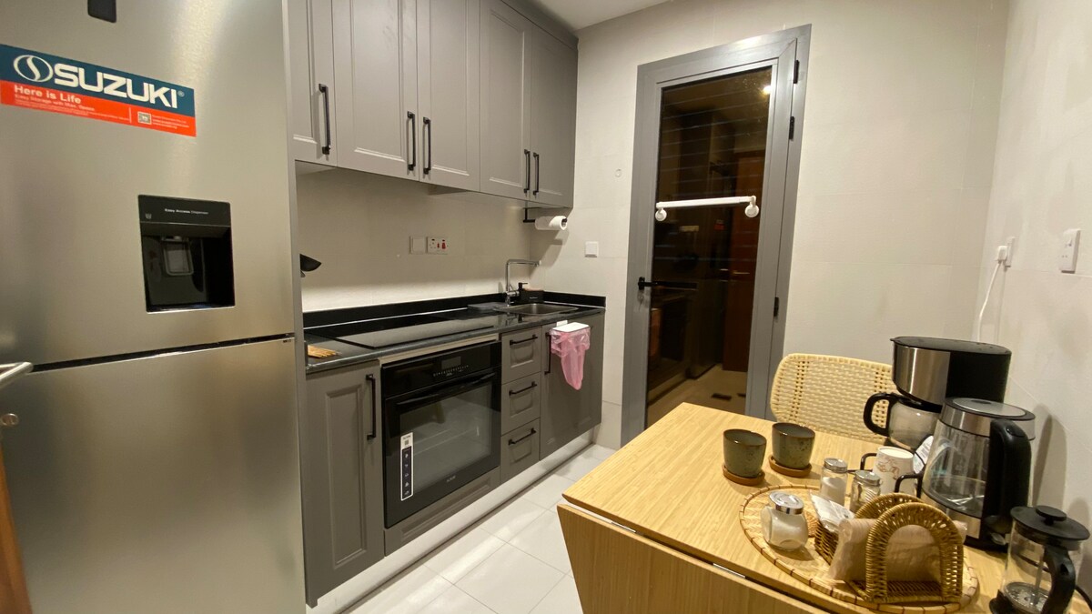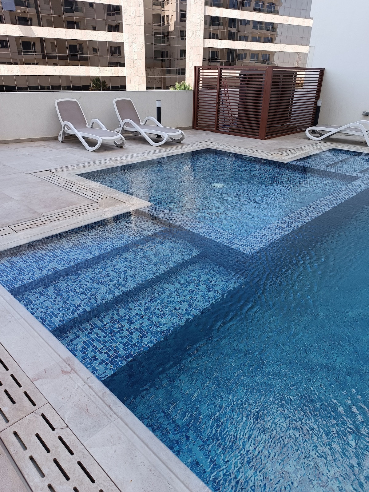 Ovaj lijepo uređeni dvosobni stan nudi savršenu kombinaciju opuštanja, praktičnosti i stila, a nalazi se na samo nekoliko koraka od plaže, marine Al Mouj, tržnog centra The Walk i raznih kafića i finih restorana. Probudite se uz miran pogled na marinu, uživajte u jutarnjoj kafi na balkonu i provedite dan na privatnom bazenu ili plaži, sve na pješačkoj udaljenosti. Bilo da ste ovdje zbog posla ili porodičnog odmora, ovo pruža sve što vam je potrebno za nezaboravan boravak.
