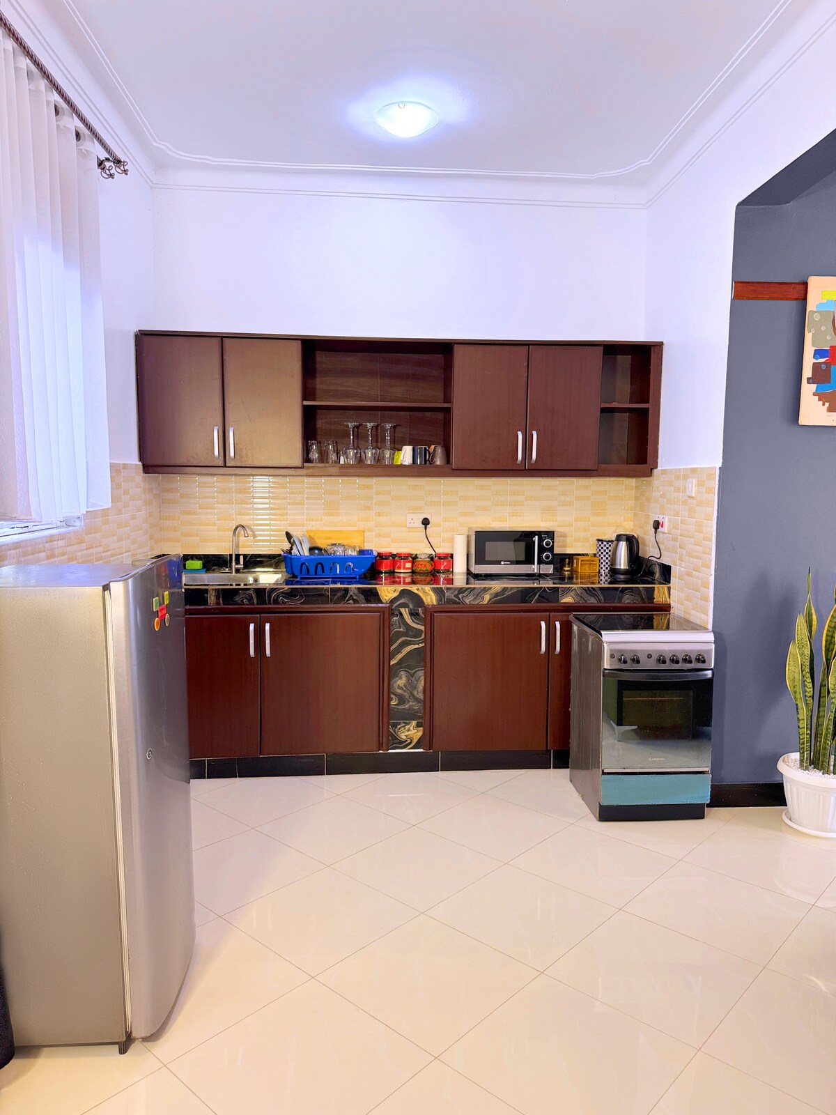 Moderan, udoban stan u srcu Mujenge Uživajte u mirnom boravku samo nekoliko minuta od vrhunskih restorana, kafića i prodavnica. Potpuno opremljen sa udobnim dnevnim boravkom, opremljenom kuhinjom i mirnom spavaćom sobom. Pristupite teretani i bazenu na samo nekoliko minuta hoda od rezidencije. Bezbjedna i tiha četvrt sa danonoćnim obezbjeđenjem i bezbjednim parkingom. Savršeno za poslovne putnike ili putnike u slobodno vrijeme koji traže udobnost i praktičnost u Kampali.