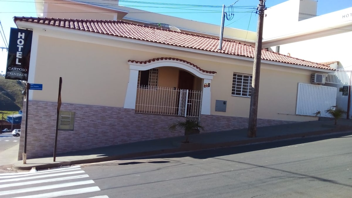HOTEL CARDOSO TRINDADE, sua casa fora de casa! Todos os quartos são equipados com: *Banheiro individual *Ar condicionado e Ventilador *Frigobar *Smart Tv *Wi-fi Temos garagem própria e coberta . Café da manhã .
