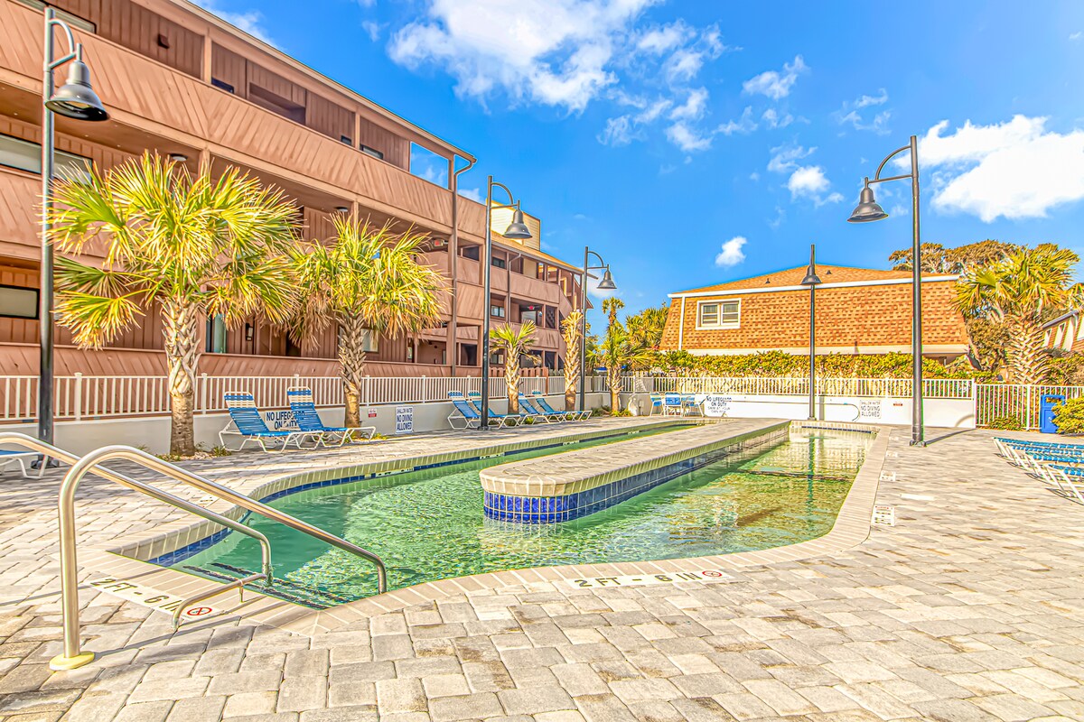 Probudite se uz pogled na okean u ovom udobnom stanu u odmaralištu Dunes Village! Smješten na Zlatnoj milji u Mirtl Biču, ovaj smještaj uz okean nudi direktan pristup plaži i zabavu tokom cijele godine uz vodene parkove u zatvorenom, bazene, đakuzije i umirujuću rijeku. Uživajte u obrocima, kafi i porodičnim aktivnostima na licu mjesta, svega nekoliko minuta od vrhunskih golf terena, restorana i atrakcija. Savršeno za porodice, parove ili opuštajući bijeg na plažu u bilo koje godišnje doba.