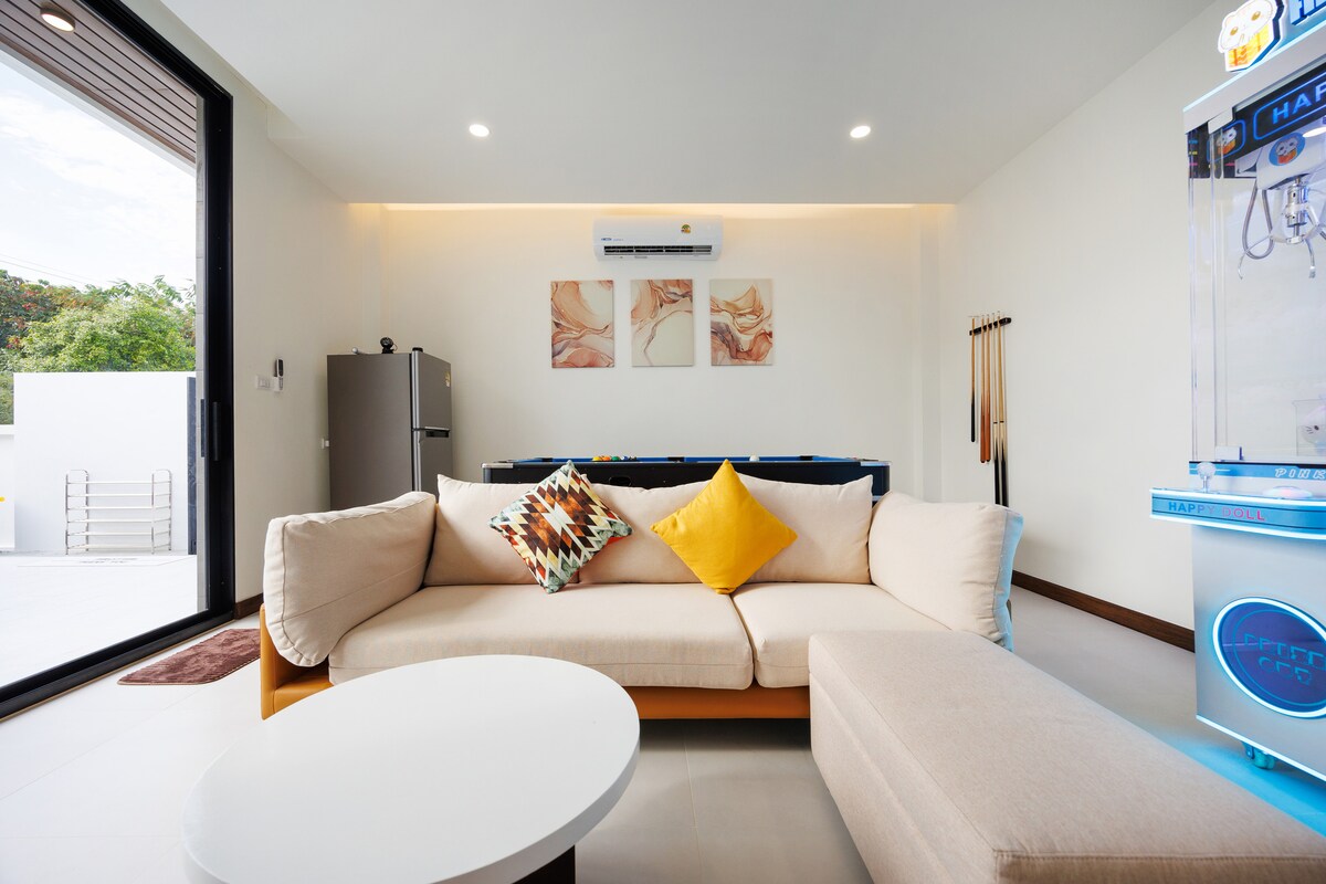 Prostrano prirodno okruženje, parking za više automobila, savršeno za porodice ili grupe prijatelja koji traže privatnost. 🛌 3 spavaće sobe, 4 kupatila Dnevni 🛋️ boravak • Kauč/bilijarski sto/Smart TV/karaoke • Sjedala za trpezarijski sto 6 • Mikrotalasna pećnica/toster/frižider/aparat za vodu za piće 🍽️ Kuhinja Bazen od 3x7 metara sa slanom vodom 🏊🏻♂️ sa dečijom zonom 🚗 Prevoz 5 minuta do parka Hat Yai 10 minuta do sela Hatijai 20 minuta do tržnog centra Lee Garden Plaza i tržnog centra Central Festival Hatyai 30 minuta do plaže