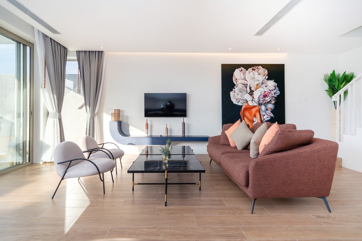 • 📍 Odlična lokacija: nalazi se u Surinu, na pogodnoj lokaciji u odnosu na Bang Tao, Kamalu i sve sadržaje sa obiljem mogućnosti za boravak, obedovanje i zabavu. • Konfiguracija i sadržaji u 🏰 kući • 🏡Vila ima ukupno 3 sprata, 2 spavaće sobe na 3. spratu, prostrani dnevni boravak i prelivni bazen na 2. spratu, 3 spavaće sobe na 1. spratu, od kojih se spavaća soba 4 i spavaća soba 5 dele jedna s drugom. • 🛏️ Spavaće sobe i kreveti: 5 spavaćih soba sa 4 kreveta veličine super-king (2 m × 2,2 m) i dva kreveta za jednu osobu (1,1 m) za 10 gostiju u standardnoj verziji. • 🌊Rekreacija na otvorenom: Opustite se u svom privatnom prelivnom bazenu, savršenom za mirno popodne ili zabavu pod suncem sa porodicom i prijateljima.Uživajte u zabavi na bazenu i opuštanju. • 📱Pametna i mrežna konfiguracija Brzi internet i Wi-Fi Smart TV: Podržite YouTube, Netflix i druge • 💎 Plaćena usluga: Profesionalno čuvanje djece Profesionalni kuvar • Prednosti 📍 osnovne lokacije • ☕ Glavni put: udaljen samo 900 metara (duž glavnog puta nalazi se mnogo radnji i restorana). • 🛒 Minimarketi: Na pješačkoj udaljenosti od 900 m nalazi se minimarket 711.