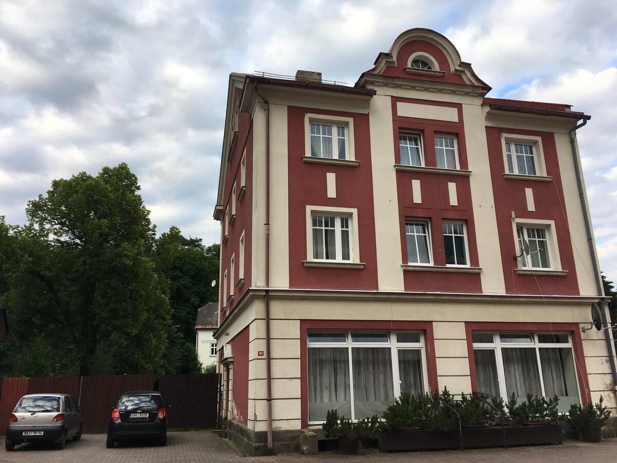 Nedavno renoviran i dobro opremljen stan sa kapacitetom 6 osoba nalazi se u samom centru Nové Město nad Metují, samo 50 metara od lokalnog dvorca. Nalazi se u istorijskoj zgradi, označenoj kao spomenik kulture i deo je glavnog trga. Nové Město nad Metují je veoma popularno odredište za turiste sa svih strana. To je idealno mesto za istraživanje okolnih znamenitosti, planinarenje, ali i biciklizam, skijanje i još mnogo toga.