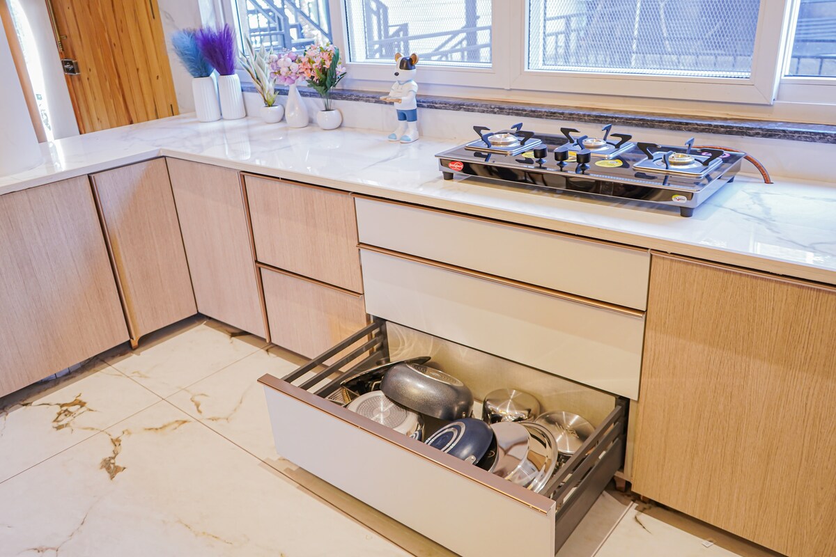 Esqape Mukteshwar: Najbolje ocijenjeni | Stilski i šik | 3 BHK | Prikladno za kućne ljubimce | Obiteljska kućica | Nevjerojatan pogled na vrhove snijega. Top 5 stvari koje treba znati: 1. Osamljena lokacija, okružena prirodom. 2. Neverovatan pogled na Himalajske snežne vrhove. 3. Hi-speed Wi-Fi. 4. Koristite našu potpuno opremljenu kuhinju ili unajmite kuvara. 5. Smart TV sa Netflix, Amazon Prime i TataSky.