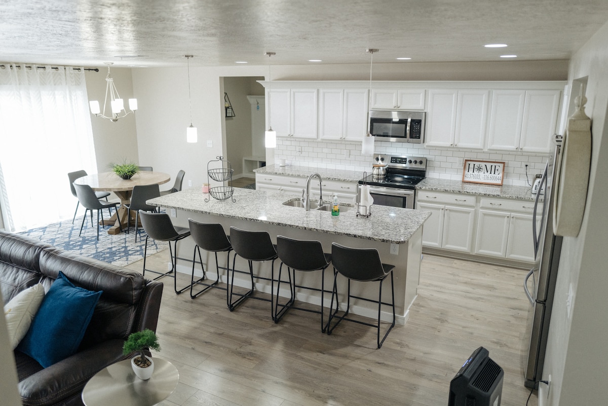 Uživajte u elegantnom i udobnom smještaju s 3 spavaće sobe u Nampi u Ajdahu, savršenom za porodice, poslovne putnike i grupe do 10 gostiju. Ovaj profesionalno uređen smještaj ima otvoren prostor, udobne hibridne dušeke, luksuznu posteljinu i poseban prostor za rad na daljinu. S obzirom na to da se nalazi na manje od milje od autoputa, imaćete brz pristup glavnim tržnim centrima, restoranima i zabavnim sadržajima u Nampi, a boravićete u mirnom kraju. Gosti takođe mogu da uživaju u zajedničkoj košarci