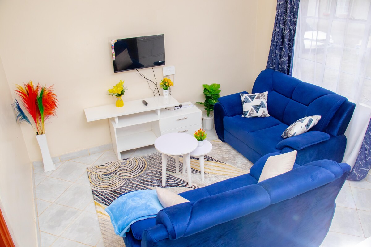 Pobjegnite u svoje privatno utočište u Kisumu! Ovaj elegantni jednosobni stan u mirnom imanju Tom Mboya savršen je za samce ili parove. Uživajte u namjenskoj radnoj stanici sa snažnim Wi-Fi mrežom, potpuno opremljenoj kuhinji i privatnom balkonu sa pogledom na bujno zelenilo. Opustite se u udobnosti sa šik životnim prostorom i bezbjednim parkingom u sklopu objekta. Čeka vas miran i luksuzan boravak.