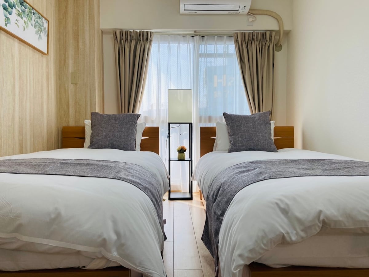 ◆Location: 1 subway stop from Namba, Dōtonbori, and Tennōji. 180m from Daikokucho subway, 2mins walk. ◆Facilities: Two double bedrooms Separate living area, kitchen, and bathroom. Fits up to 4 guests. ◆Transport: Access to Midosuji, Yotsubashi, JR Loop, and Nankai Line. Kansai Airport: 45 mins on Nankai Line, no transfers. Universal Studios: 25mins by JR. ◆Notes: 1 free towel/guest. Extras 200 yen. No cleaning during stay. Quiet after 10 pm. No smoking indoors.