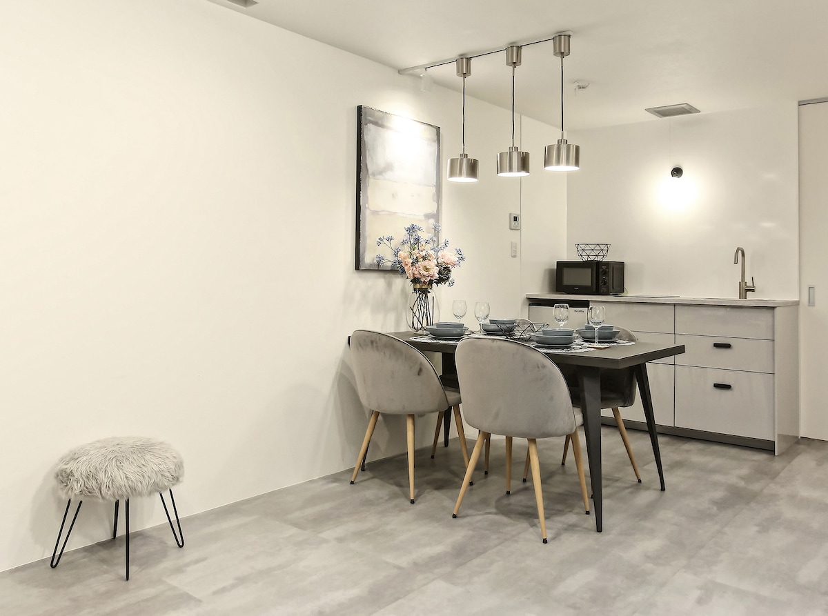 This designer room is a 2LDK measuring 51.3㎡. It's a 7-minute walk to Osaka Metro Nagahoribashi Station and just 1 minute by train to Shinsaibashi Station. From Nagahoribashi Station, you can reach Umeda Station in 10 minutes and Kansai Airport in 50 minutes. ◆ Features Located in the heart of Osaka Minami Supermarket and convenience store within a 5-minute walk Stress-free self-check-in system Available in Japanese, English, and Chinese High-speed Wi-Fi available