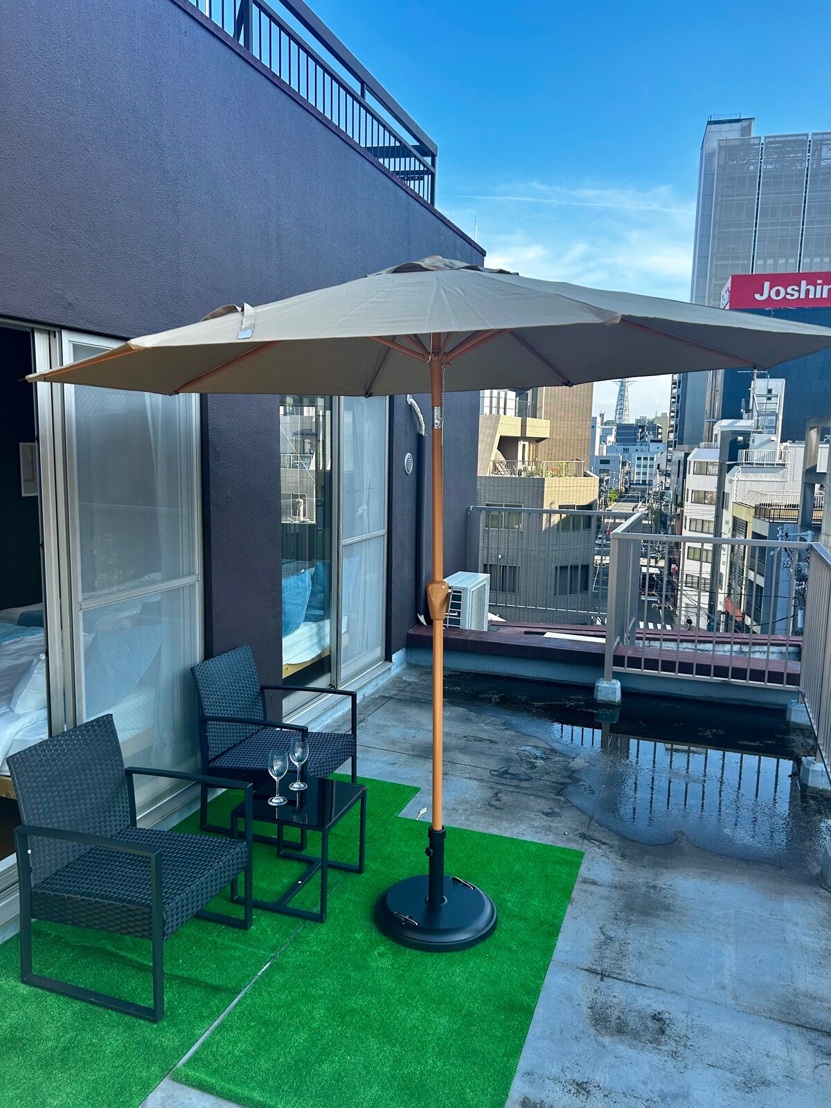 Odlična lokacija! Samo 2 minuta od autobuskog terminala OCAT/Aerodrom i 4 minuta od stanice JR Namba. Yotsubashi-line, Midosuji-Line, Kintetsu-Line, Nankai-Line, Dotonbori, Nipponbashi, Shinsaibashi su udaljeni pešice. Nalazi se u srcu Osake! Prilično stara zgrada, ali soba je lepa i čista. Dva kreveta u glavnoj spavaćoj sobi. Tri kompleta futona za još tri gosta. Kuhinja pune veličine. Mašina za pranje i sušenje veša. Imajte na umu da je tuš-kada nedavno renovirana.