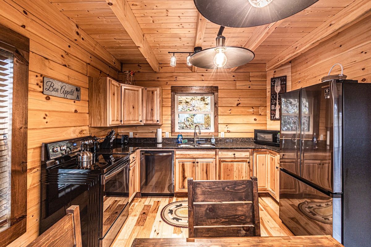 Dobro došli u slikoviti Brajson Siti! Ova potpuno nova udobna, moderna brvnara sa 2 spavaće sobe/2 kupatila je privatna i udobna, sa svime što vam je potrebno da biste ga učinili svojim domom. Ova brvnara se nalazi na pogodnoj lokaciji - manje od 1 milje do prodavnice, 2 milje do centra Brajson Sitija i železničke pruge Great Smoky Mountains i nadohvat ruke od mnoštva aktivnosti na otvorenom i vidikovaca. Uživajte u privatnom pristupu hidromasažnoj kadi, kaminu, kaminu i velikoj terasi sa predivnim pogledom na planine!