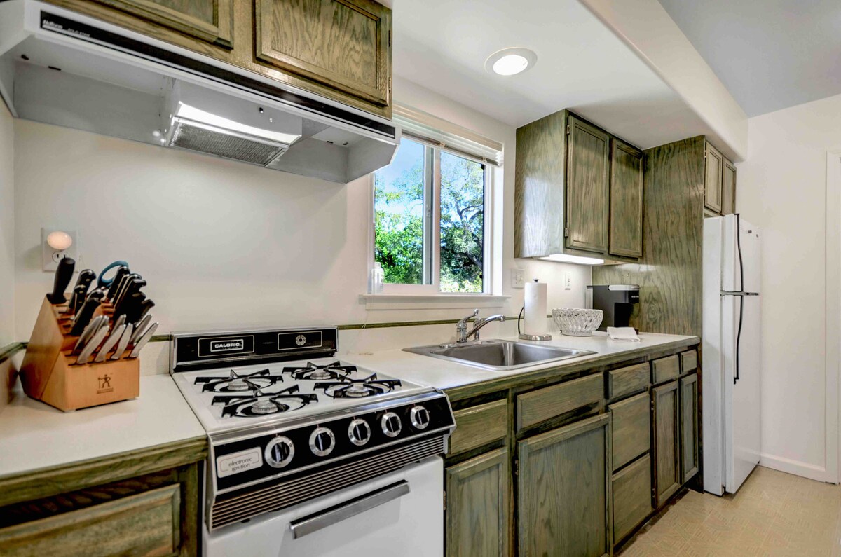 FAWNS CREEK IN WINE COUNTRY je mirno i privatno skrovište. Moderni dekor na farmi ima za cilj da vam pomogne da se opustite i opustite čim uđete. (Bez kućnih ljubimaca i bez djece😉) Songbirds će biti vaš budilica ujutro. Kolibriji, vjeverice i jeleni će vas posjećivati cijeli dan. Sove, cvrčci i žabe će vam pevati uspavanku. Bacite kobasice na plinski roštilj i večerajte na fresko. Kliknite na sto za loženje na gas i umotajte se u ćebe pod zvijezdama.